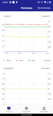 4) Retrouvez les historiques des derniers jours concernant les variations de tension, de capacité ou de température via l’onglet « Historique »