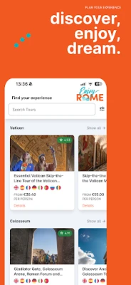 Welcome to the EnjoyRome App, the perfect tool to manage your tour bookings with ease. Whether you're exploring the Colosseum, the Vatican, or the hidden gems of the Eternal City, our app ensures a seamless and stress-free experience.