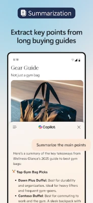 • Maximize your time while you browse online. Use AI-powered Copilot to quickly summarize web pages, PDFs, and videos — providing clear, cited insights in seconds.